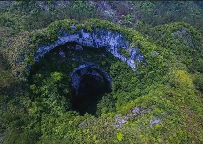 记录天坑的深度,口径,坑壁坡度,拍摄照片,区分喀斯特地貌“天坑-溶洞-峰丛”的关联特征;