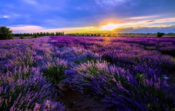 伊犁河谷的风吹向了紫色浪漫花海,7-8月正是天山花海景区最美的季节,这里2.2万亩薰衣草已经在戈壁滩满屏盛开。