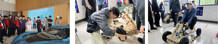 3.MG造车实践课程,分小组完成电动汽车拼装并试驾。