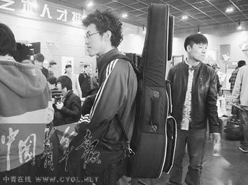 以传统艺术的视角判断,流行演唱、爵士乐演奏、街舞等一些现代音乐根本无以进入高等音乐艺术院校专业教学,可北京市现代音乐学校与北京现代音乐研修学院则向社会专门招收民间艺人或钟爱现代音乐的年轻人进行全日制教学。据悉,今年该校就有600多名现代音乐艺人毕业。图为该校一位应届毕业的流行演唱专业学生在校园专场招聘会上应聘。记者 李剑平 摄