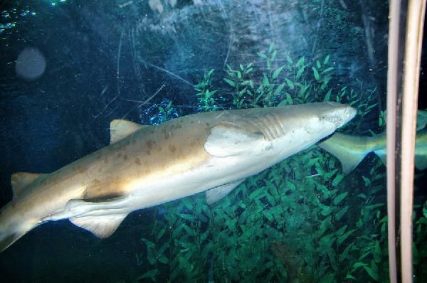 长风海洋世界的另一个组成部分---水族馆,是中国第一家大型主题性水族馆,主体建筑位于银锄湖底13米处,养有300余种,15000 余尾鱼类。馆内分为丛林探险,珊瑚礁丛,深海沉船,鲨鱼甬道,企鹅馆等区域,游客在鲨鱼甬道中能感受到与海中霸主零距离接触的刺激体验,而改建后的丛林探险由于逼真的雨林环境,深受小朋友们的喜欢。