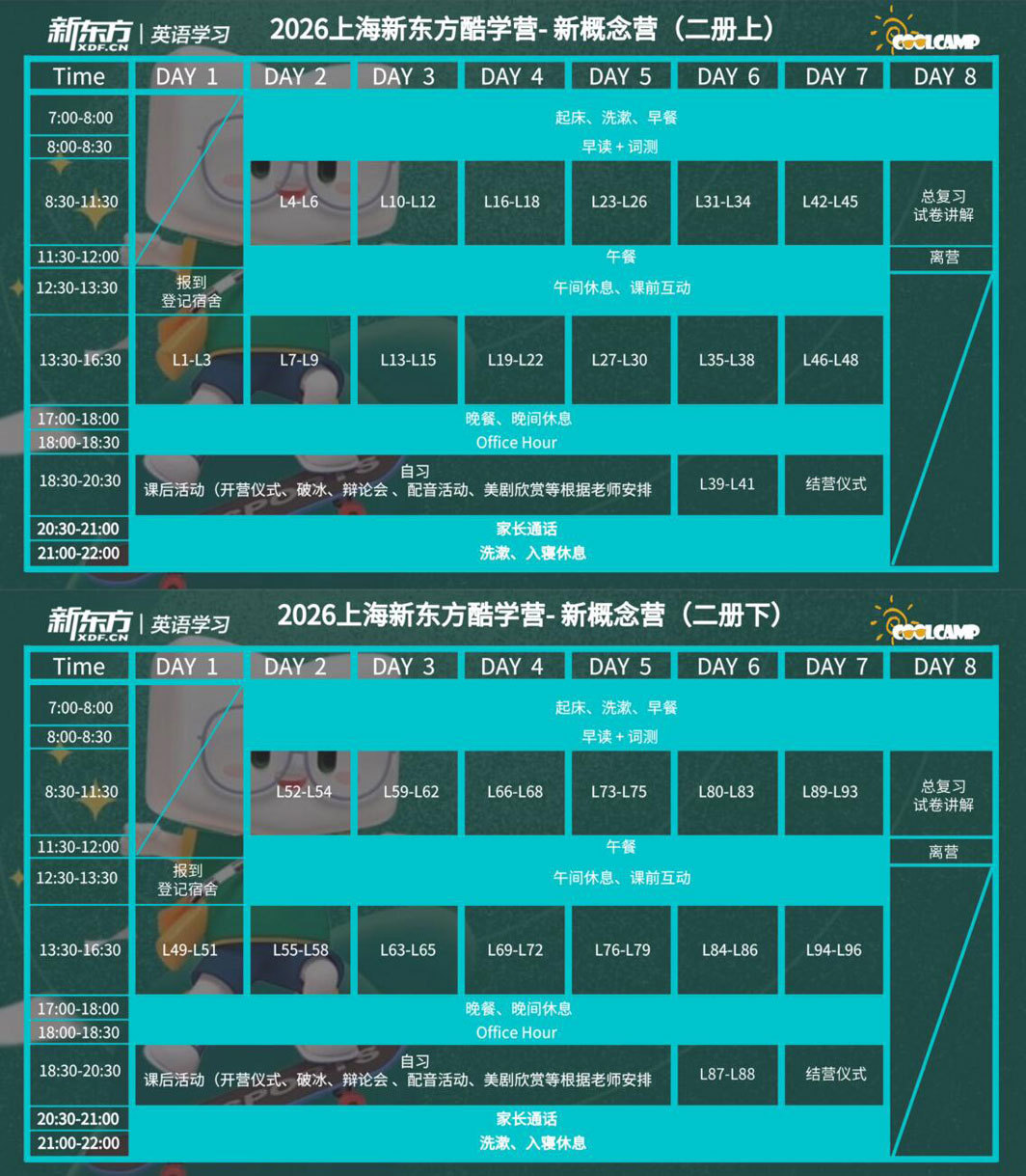 A:所有营种配发教材,报到时现场领取,新概念营两期连报不重复发书
