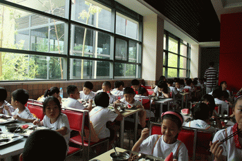 17日下午的第一餐晚饭,食堂里热闹非凡,所有的小朋友都已经找到了自己的团队,在各个老师的带领下有序就餐。每一个团队围在一起,空气里充满了年轻而又新奇的味道,感染了所有的老师及工作人员,也感染着这个学校的一角。