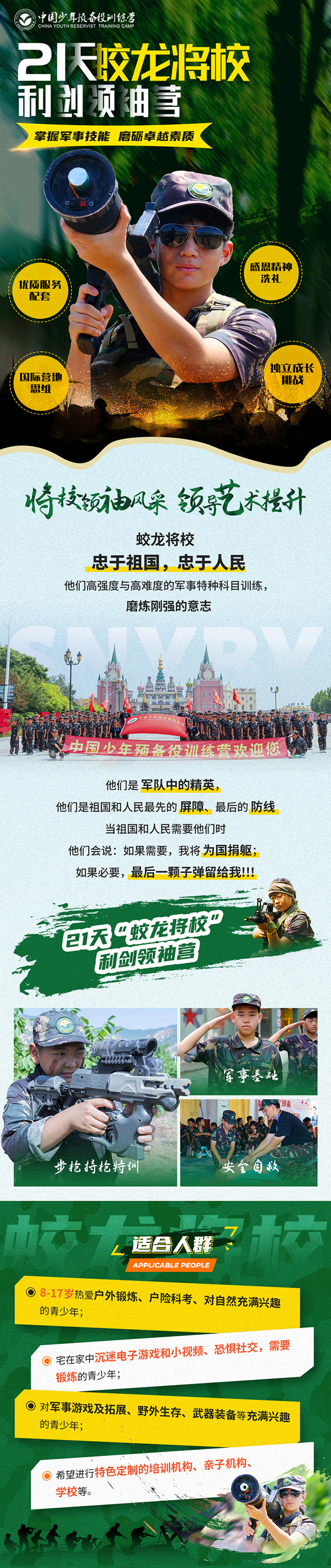 ★军事训练+行为习惯训练:通过军事化的行为训练,由外向内渗透,彻底解决内心不良根源,达到身心合一,想到就可以做到,从而达到自律;