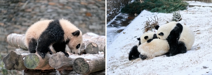 到熊猫幼崽蹒跚学步的温暖画面
