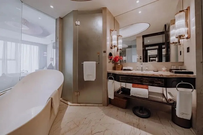 酒店汉唐文化主题,位于市中心一环路,毗邻四川大学望江校区,靠近春熙路、太古里等热门商圈