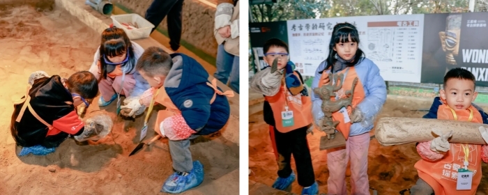 【模拟考古——破解方寸间的文明密码】在这里,你们将成为“小小考古家”,在真实复原的考古坑中,亲手操作手铲、刷子等专业工具,体验考古发掘。这是一场考验耐心与细心的冒险,当“国宝”从你们手中破土而出时,不仅能收获发现的喜悦,更能亲身感受中华文明的博大精深,在心中种下一颗守护国宝、探索历史的种子