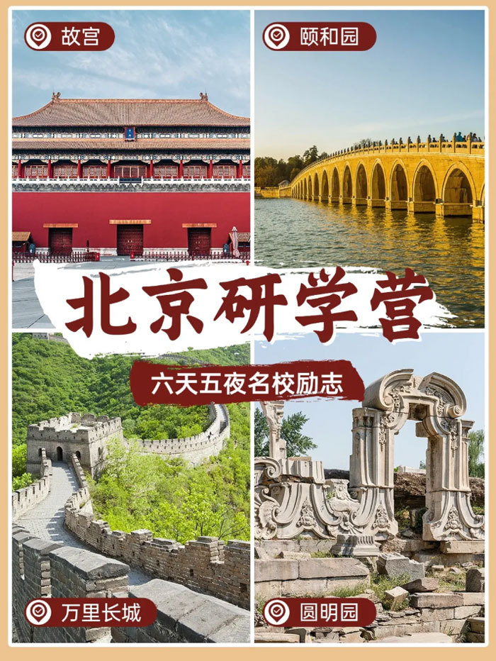 天安门广场、故宫博物院、八达岭长城、清华大学艺术博物馆、圆明园、颐和园、天坛、中央电视塔、天文馆国子监、孔庙
