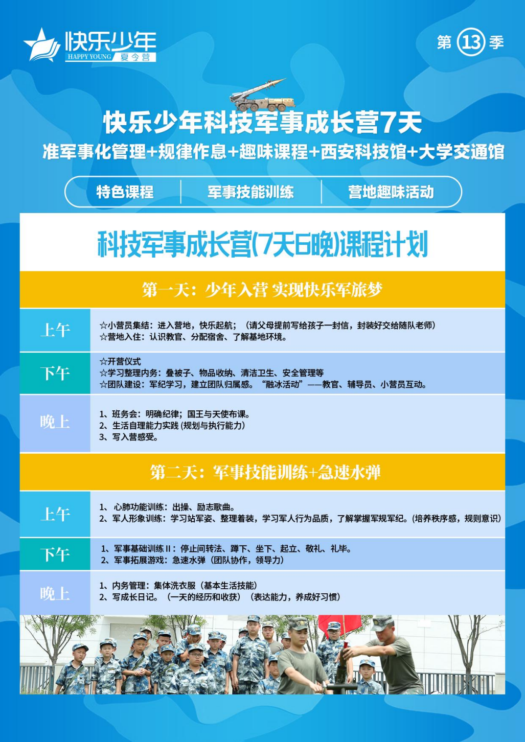 5、特别赠送:服装2套(短袖长裤+体能服短袖短裤)、迷彩帽、军用水壶、牙缸、夏令营证书,定制奖牌、适时播报......