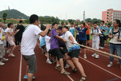 第二场比赛是e计划营vs高中听说风暴a营,e计划营代表队的实力明显强于对手,他们采用的是“一鼓作气”的战术,想以较短的时间来解决战斗。比赛伊始,他们就在助教张泰然的指挥下发起了排山倒海的进攻。进攻声势劲道十足,现场气氛几欲凝结,张泰然的指挥如古乐般行云流水,越是战况酣烈,越要气定神闲,而凝聚的力量此刻却暗流汹涌,随着绳子源源不断地传递过去,e计划代表队用富有节奏的进攻。团结如一人的配合,战胜了实力较弱的对手。