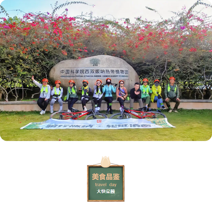 勐罕出发,骑行至曼远村,跟着领队在乡间小道骑行穿梭,感受傣族风貌,骑游向往的生活取景地,途中品尝当地新鲜水果。下午沿着绿树成荫的热带森林,骑行前往勐仑,徒步游览中科院热带植物园,晚上自由活动。