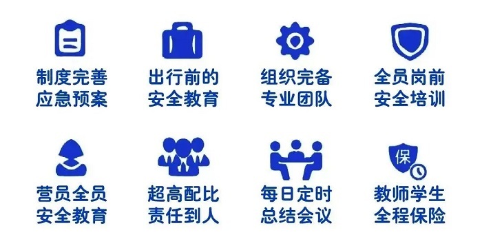 6、安全管理 细致服务 | 始终坚持安全第一,经过多年实践经验总结的八大安全保障措施和八大服务标准贯彻营期始终,全力保障营期活动的安全有序进行,确保每位营员获得更佳的品质体验。
