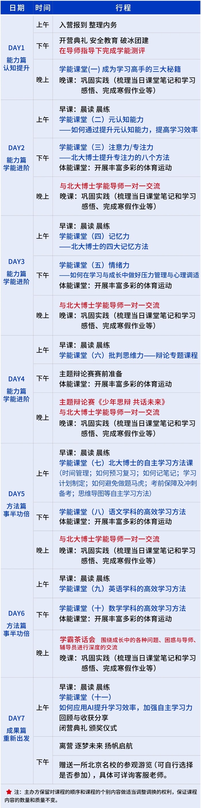 招生对象:10-18岁身心健康的中小学生(希望提升学习能力的青少年/希望掌握高效学习方法的青少年/希望与名校优秀学子近距离交流学习的青少年)