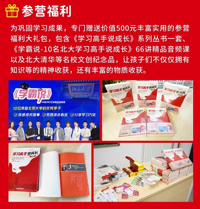 “筑梦清北 励志未来”学习动力激发北京名校研学营是围绕学习力三要素(学习动力、学习毅力、学习能力)之一的学习动力,结合学习力夏冬令营北大学霸好方法研发团队在对上百名北大优秀学子深度访谈研究后提炼出的成为学习高手的三大秘籍,经过理论提升及多年实践检验,设计的侧重激发青少年学习动力的高品质研学夏冬令营,至今已成功举办十一届,获得了实质的成效以及学生、家长、社会的认可和好评。