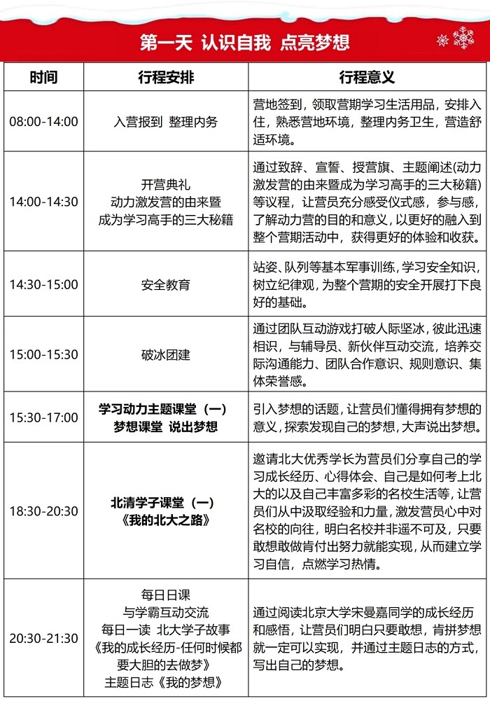招生对象:10-18周岁身心健康的中小学生(希望寻找人生目标的青少年,希望激发学习动力的青少年,希望走进梦想坚定名校梦想的青少年)